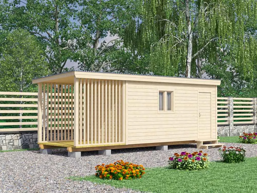 Бытовка для дачи в стиле хай-тек 4,8х4 с верандой4,8х419.2ДВП-Оргалит: