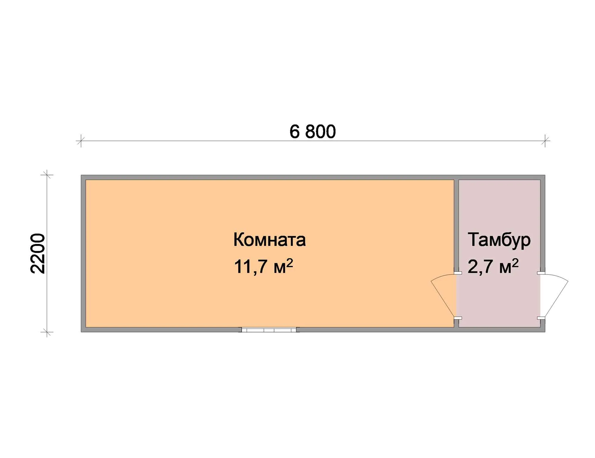 Дачная бытовка Тюльпан6.8x2.214.96ДВП-Оргалит: