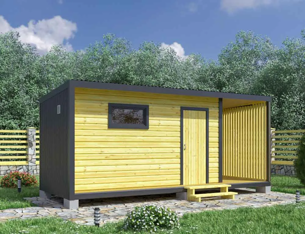Бытовка для дачи в стиле хай-тек 4,8х3 с верандой4,8х314.4ДВП-Оргалит: